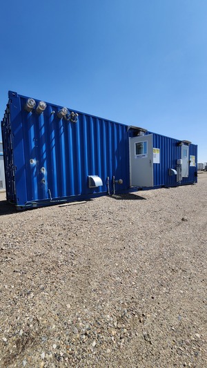 Self contained Poly mixing skid Seacan